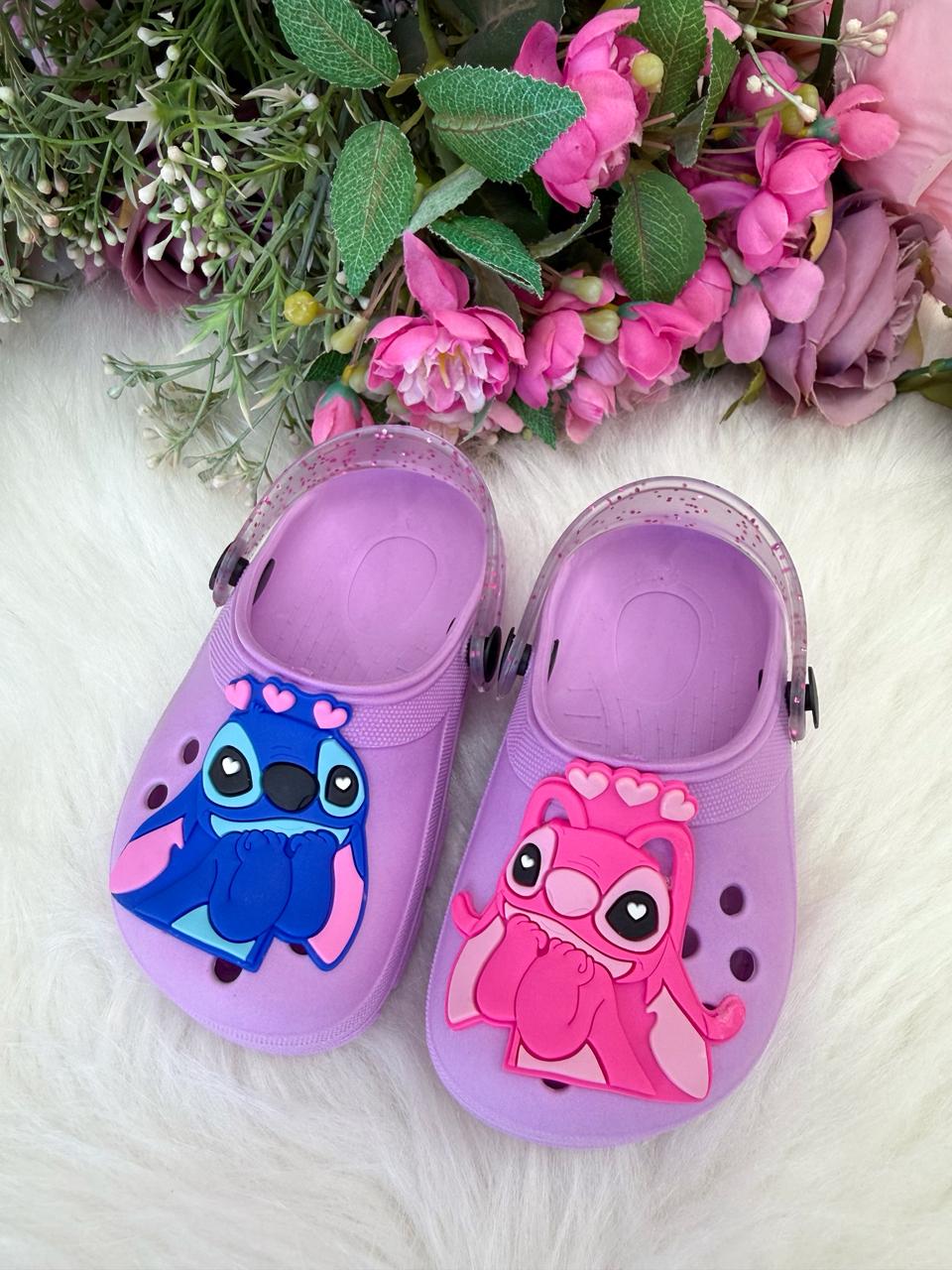 O modelo conta com perfurações frontais que auxiliam na ventilação dos pés, além de aplicação emborrachada tematicas, trazendo um visual lúdico e encantador. Possui alça traseira móvel com acabamento levemente transparente e com brilho, garantindo melhor ajuste e segurança ao caminhar.