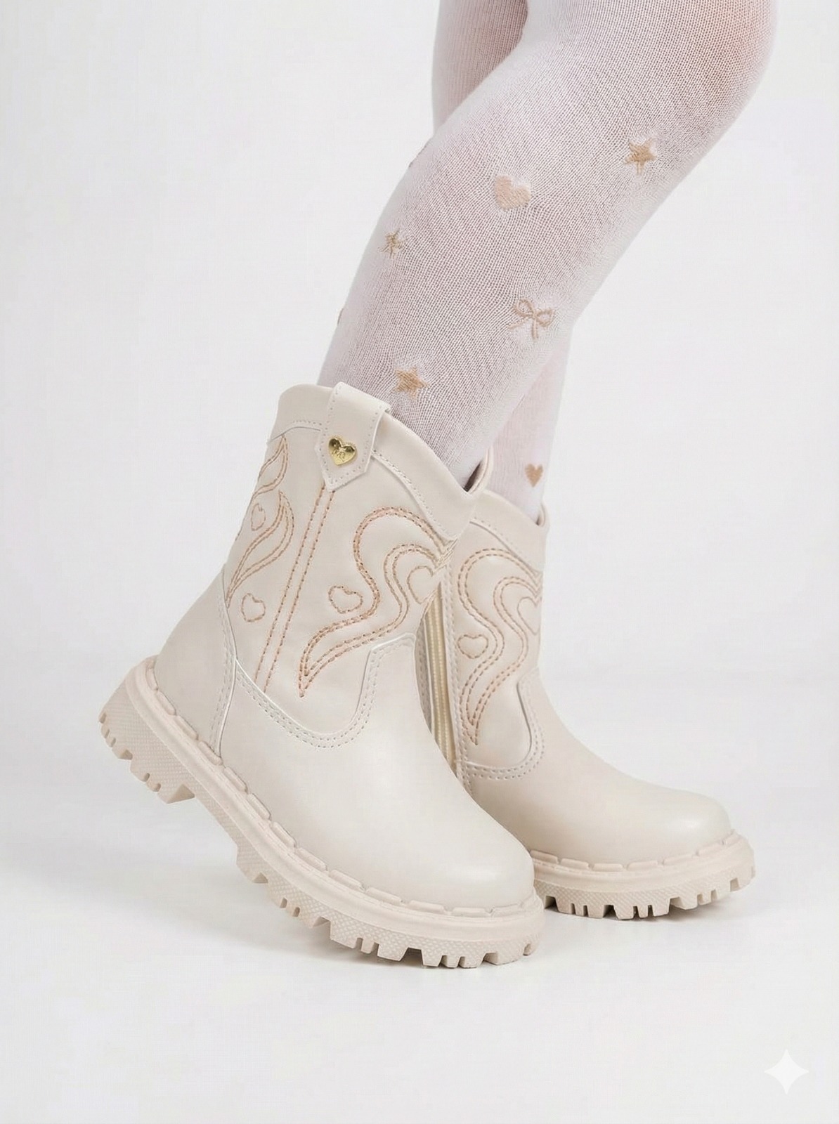 Bota Infantil Estilo Texana / Boiadeira, perfeita para unir conforto, estilo e versatilidade no dia a dia da sua princesa. Com design clássico e delicado, ela traz um toque moderno através dos detalhes em strass, que deixam o visual ainda mais encantador.