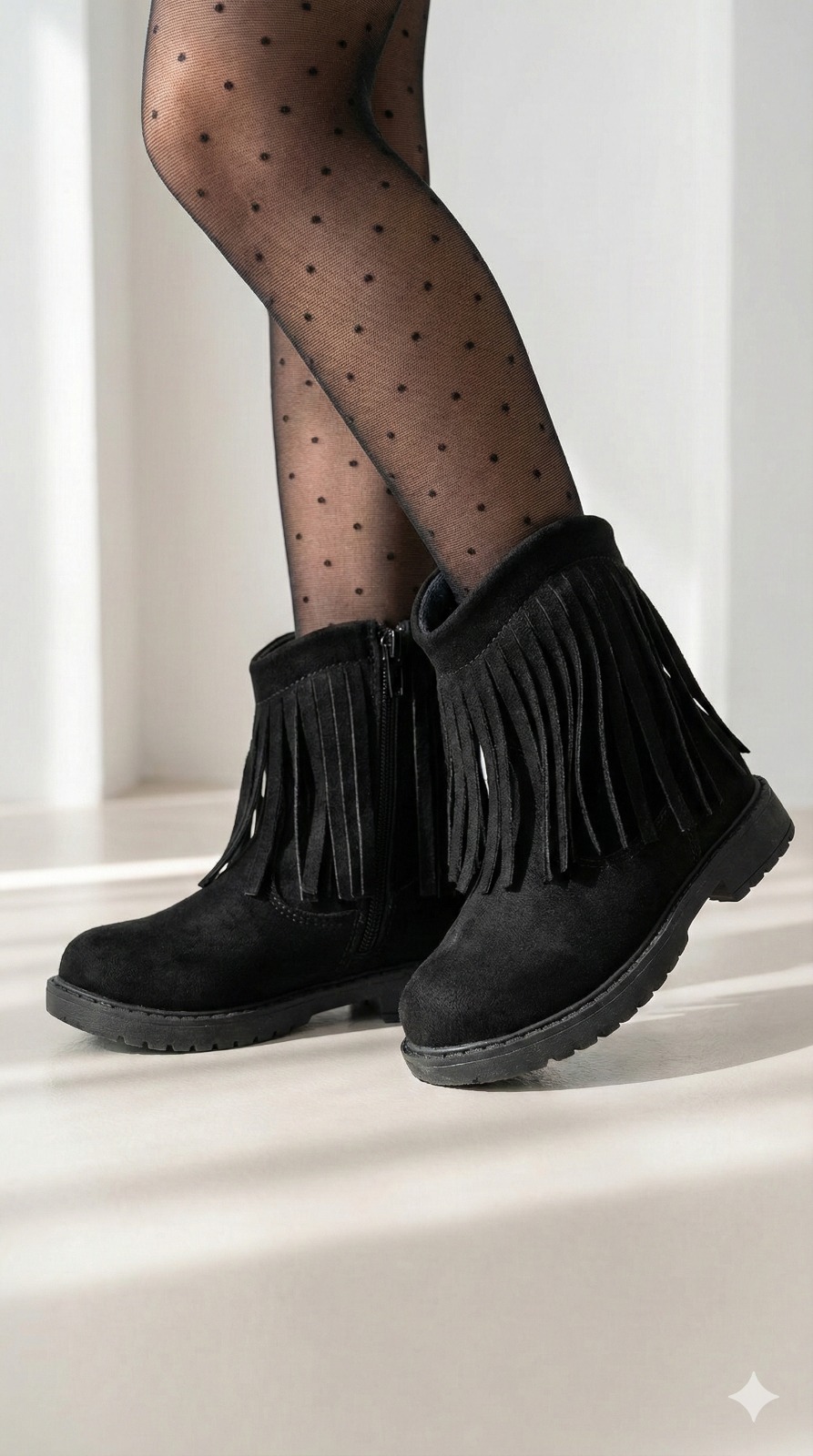 Bota Infantil Estilo Texana / Boiadeira, perfeita para unir conforto, estilo e versatilidade no dia a dia da sua princesa. Com design clássico e delicado, ela traz um toque moderno através dos detalhes em franja, que deixam o visual ainda mais encantador.