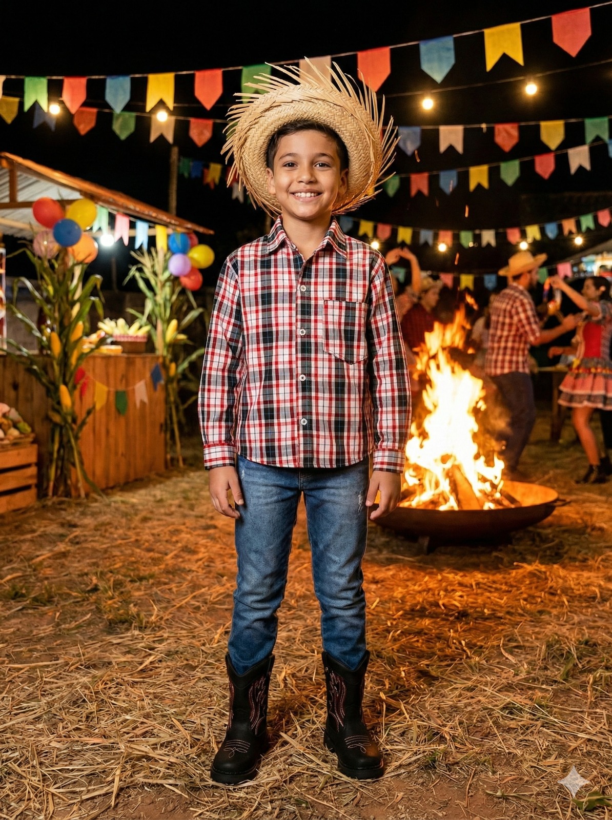 Clássica, confortável e indispensável para as festas mais animadas do ano. Essa camisa xadrez é perfeita para compor looks juninos e julinos cheios de charme, sem abrir mão do conforto que criança precisa.