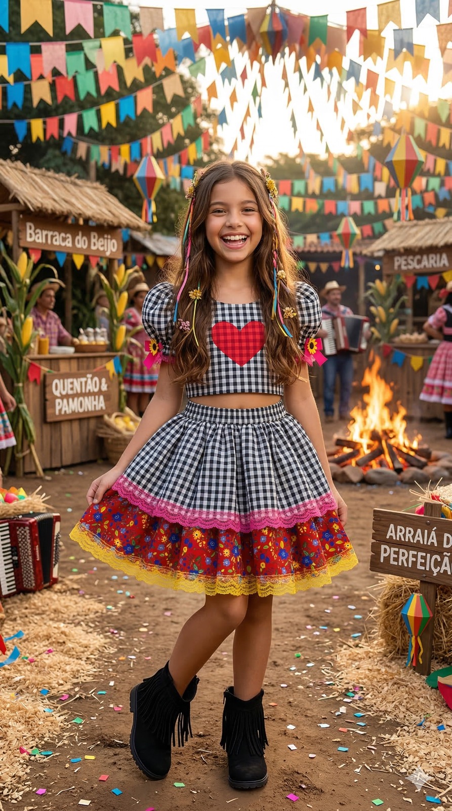Confeccionado em tecido misto possui forro em poliéster e algodão para não incomodar a criança e proporcionando um caimento incrível e sofisticado, possui gola redonda, comprimento médio, mangas curtas, possui elástico na cintura para melhor ajuste e blusinha com elástico nas costas para ajustar a parte posterior do conjunto completando o look dos sonhos!