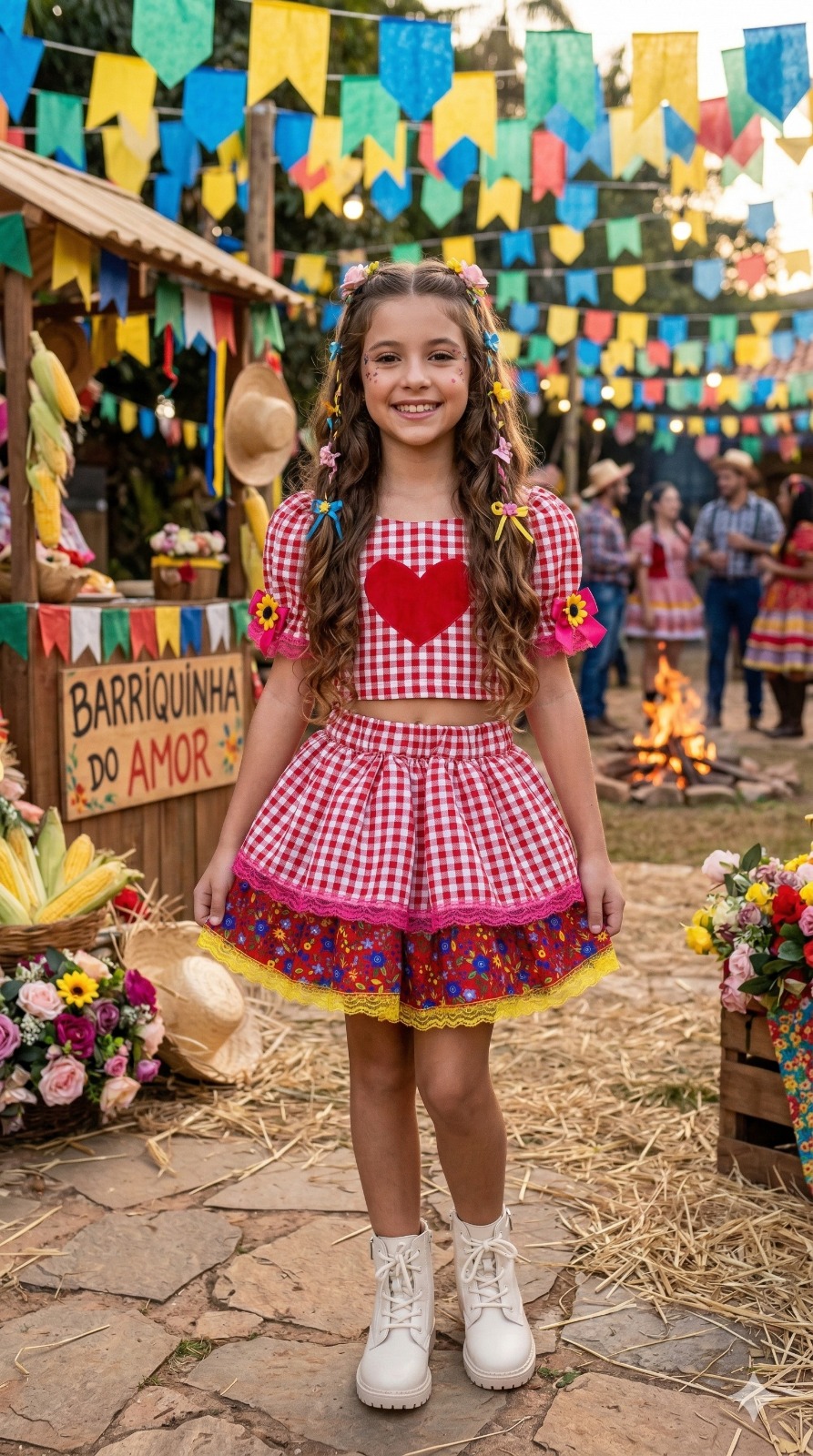 Confeccionado em tecido misto possui forro em poliéster e algodão para não incomodar a criança e proporcionando um caimento incrível e sofisticado, possui gola redonda, comprimento médio, mangas curtas, possui elástico na cintura para melhor ajuste e blusinha com elástico nas costas para ajustar a parte posterior do conjunto completando o look dos sonhos!