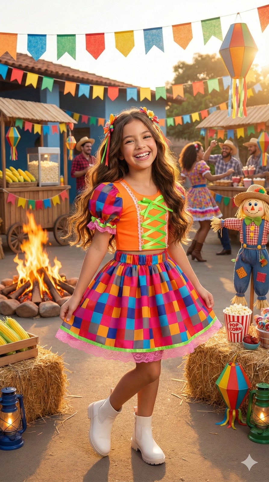 Confeccionado em tecido misto possui forro em poliéster e algodão para não incomodar a criança e proporcionando um caimento incrível e sofisticado, possui gola redonda, comprimento médio, mangas curtas, possui elástico na cintura para melhor ajuste e blusinha com elástico nas costas para ajustar a parte posterior do conjunto completando o look dos sonhos!
