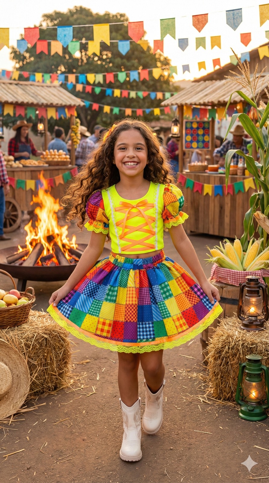 Confeccionado em tecido misto possui forro em poliéster e algodão para não incomodar a criança e proporcionando um caimento incrível e sofisticado, possui gola redonda, comprimento médio, mangas curtas, possui elástico na cintura para melhor ajuste e blusinha com elástico nas costas para ajustar a parte posterior do conjunto completando o look dos sonhos!