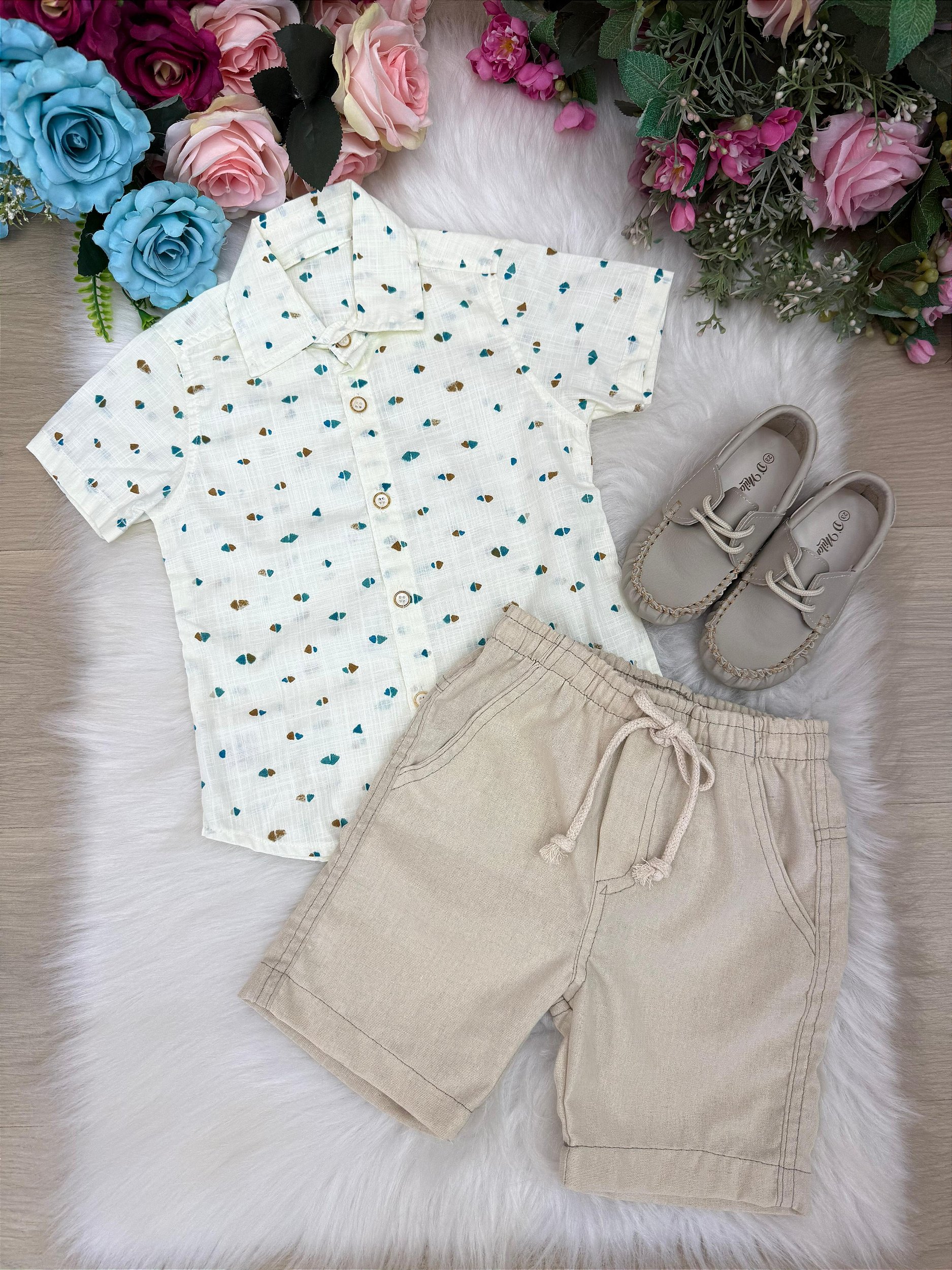 Conjunto Meninos Lucas Banana Club Shorts Linho Camisa Off