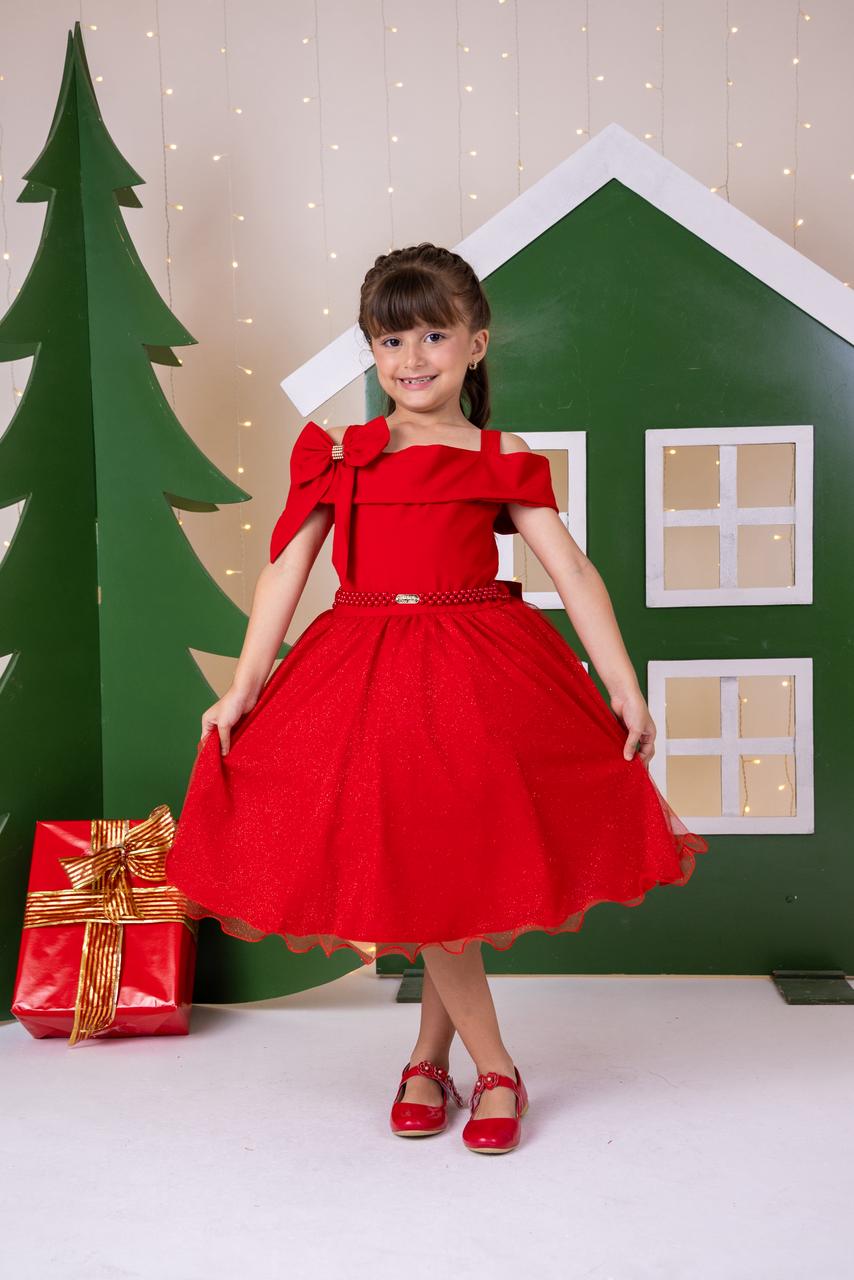 Ideal para a Coleção Natal, esse modelo une a magia da data com a delicadeza dos detalhes, transformando cada menina em uma verdadeira princesa natalina.