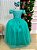 Saia longa com várias camadas de tule, criando volume e movimento de princesa;