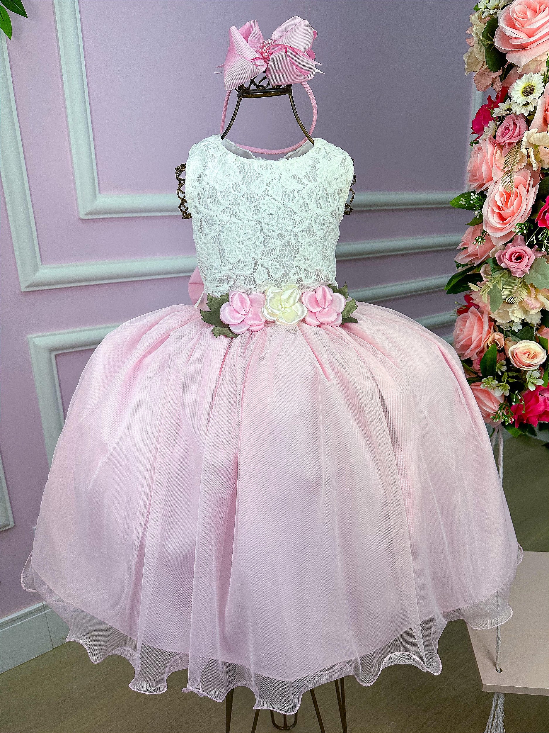 Confeccionado em tecido misto possui forro em poliéster e algodão para não incomodar a criança e proporcionando um caimento incrível e sofisticado, possui gola redonda, comprimento médio, mangas curtas, possui elástico nas costas para melhor ajuste, acabamento com lindo laço na parte posterior do vestido completa o look dos sonhos!
