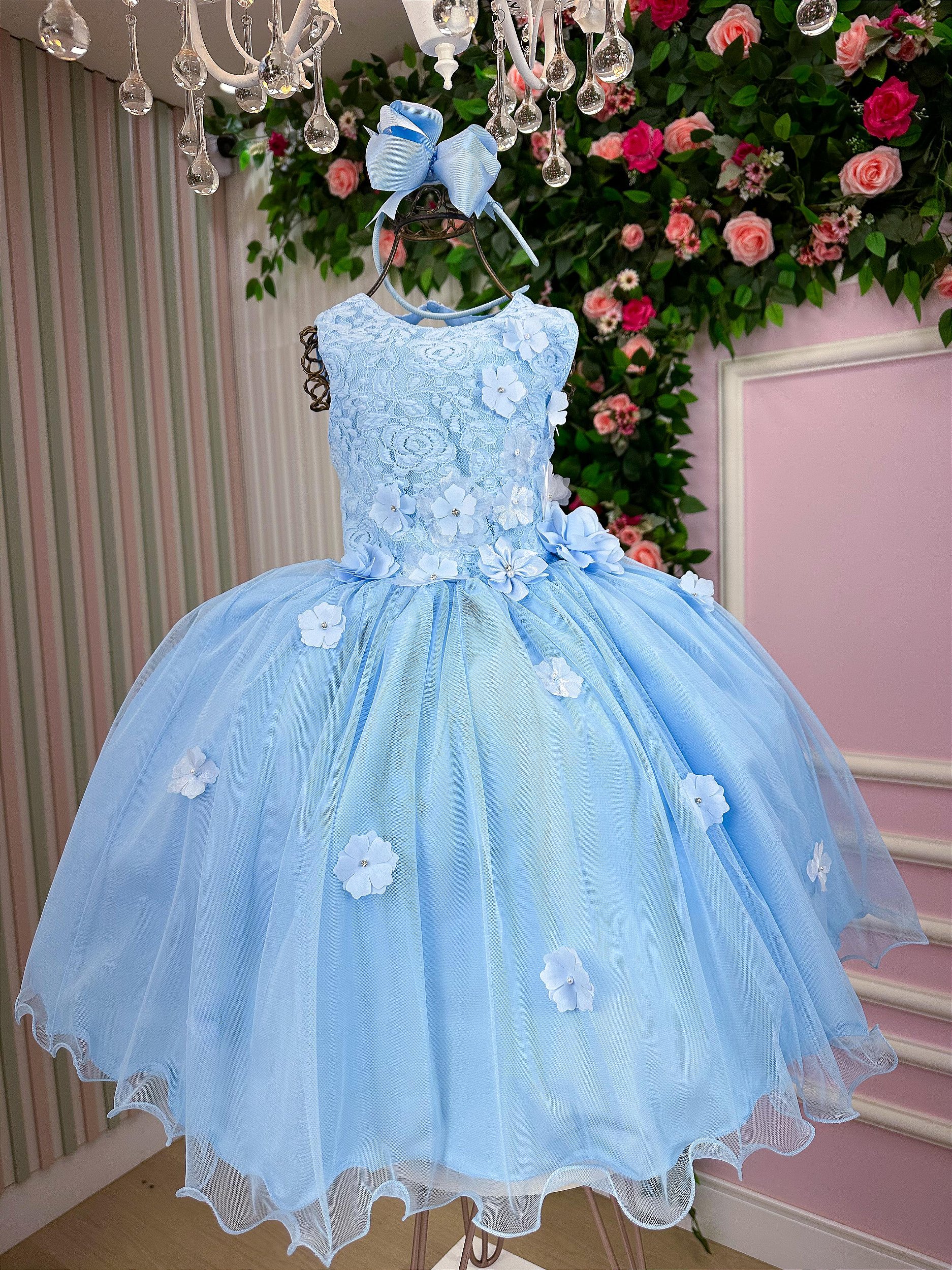 Confeccionado em tecido misto possui forro em poliéster e algodão para não incomodar a criança e proporcionando um caimento incrível e sofisticado, possui gola redonda, comprimento médio, mangas curtas, possui elástico nas costas para melhor ajuste, acabamento com lindo laço na parte posterior do vestido completa o look dos sonhos!